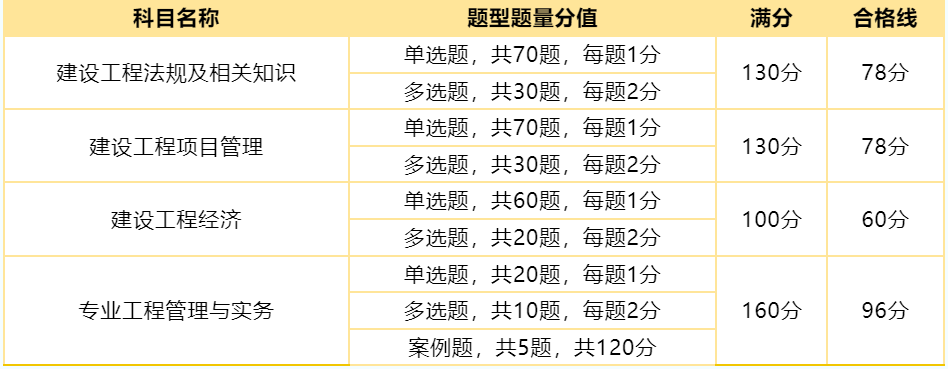 一、一建各科考试题型及分值
